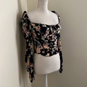 Free People Hilary Printed Top in Black Combo Elegant floral top with a stylish black base, perfect for any occasion.