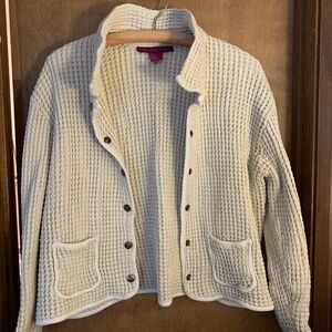 Stylish Cream Snap Closure Cardigan by Mix Nouveau. Fits like L/XL.