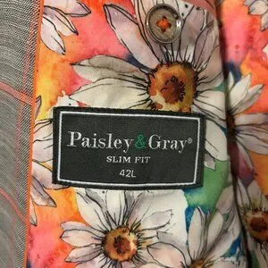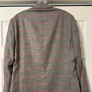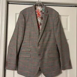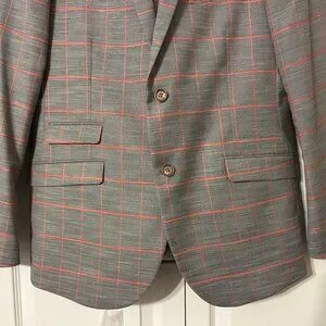 Mens PAISLEY & GRAY Sz 42L Gray & Peach Plaid Slim Fit Suit Jacket Sport Coat