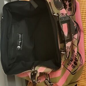 I love this bag so much. I never got around to carrying it. It is the perfect size for a weekend getaway. Comes with handles and a detachable strap. Inside zipper pocket. In almost perfect condition. Zip closure.