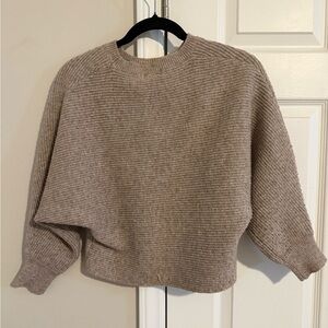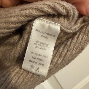 Stay warm and stylish with this cozy tan sweater. Perfect for any occasion. Perfect condition aside from the one string pictured on the back. Size small.