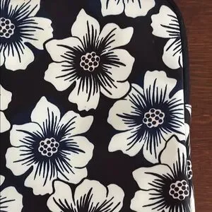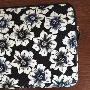 Elegant floral laptop sleeve by Kate Spade. Features a striking black and white design. Ideal for device protection. Excellent used condition. Please reference pictures for the stains on the outer edges of the laptop sleeve. Comes from a pet-free, smoke-free home.