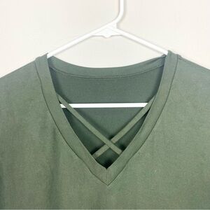 No Brand Basic Dark Green Short Sleeve Criss Cross T-Shirt