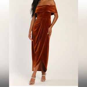 Lulus • I’m Enchanted • off the shoulder velvet dress • color rust orange • size small • more details in pics • worn once like new excellent condition