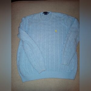 Vintage Ralph Lauren Light Blue Cable Knit Sweater, Size Large
