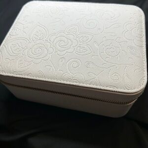 Beautifully embossed with floral patterns. Perfect for storing jewelry. Compact and stylish design in EUC.