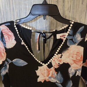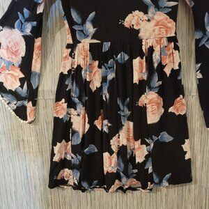 NWOT Bongo V Neck Bell Long Sleeve Back Tie Floral Mini Black Dress Size Small