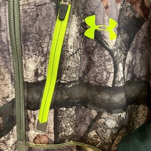 Stylish camo pullover by Under Armour. Features neon accents. Perfect for outdoor activities. Has under armour scent control