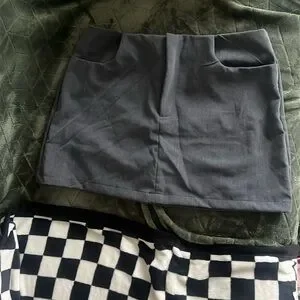 Charcoal Gray Mini Skirt | Preppy Workwear Core | Size Large