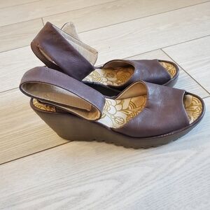 Fly London Yula Wedge Pump Purple Brown Sandals 6.5