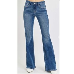 Risen Jeans Tummy Control Mid Rise Flare Medium Wash Denim