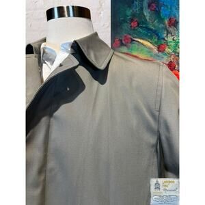 Vintage London Fog Mens 40L Khaki Tan Full Length Trench All Weather Rain Coat