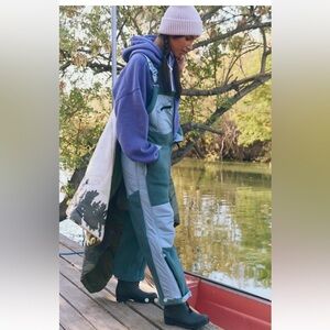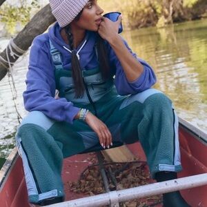 Free People Hit The Slopes Overalls Fleece Nylon Zipper Jade Blue
