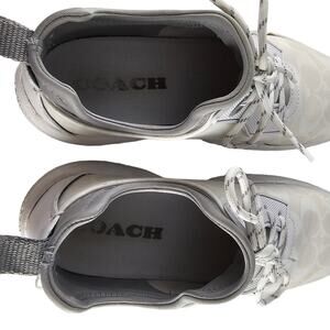 The Coach Signature 270 Tech Runner shoes are in a white and gray colorway. The preowned shoes are in good condition.