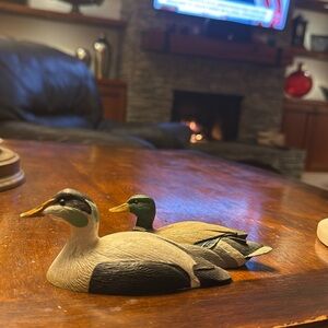 You get TWO vintage mini duck decoy’s. The Common Eider and the Mallard come together and are ready for your collection. Both unique addition to any collector's display. Crafted by William J Koelpin in 1982, and handmade, both decoys featured are common elder birds species and is hand painted. The creator's signature on both ducks add to their authenticity and value. Made in the United States. TWO of 36 miniature ducks in the 1982 Franklin Gallery The Ducks of North America Collection, portraying every species of North America's ducks in the Miniature Decoy Collection by William J. Koelpin. Painted by Hand.