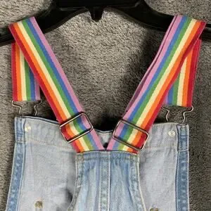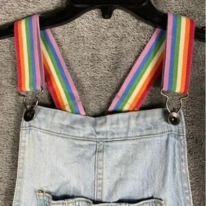 Blue Denim Jean Shortalls Rainbow Details