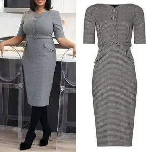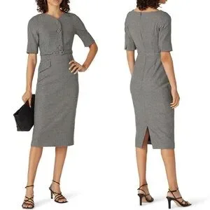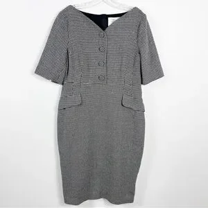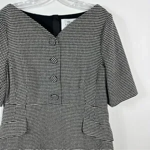 A menswear-inspired houndstooth print expertly balances the feminine silhouette of this polished two toned dress. Sheath. Short notched sleeves. Back zip.