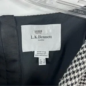L.K. Bennett Nina Houndstooth Heart Midi Dress Size 14 Two Tone Black White