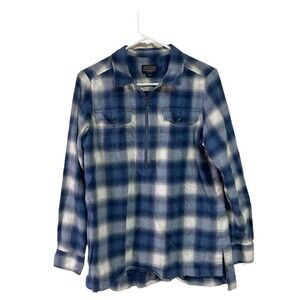 Women’s Pendleton Canyon Flannel Shirt Half Zip Pearl Snap Plaid Blue M