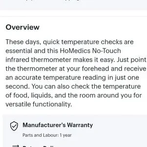 New HoMedics No Touch Infrared Thermometer. Delivers easy to read fever results.