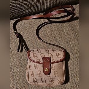 Dooney and Bourke Monogrammed Tan Canvas and Leather Mini Crossbody EUC