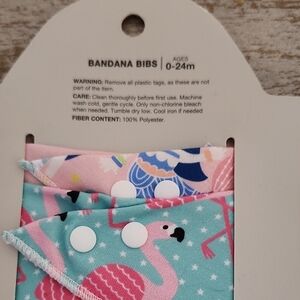 Adorable bandana bibs featuring a playful flamingo design. Perfect for keeping your little one stylish and clean. The pink and blue colors add a fun touch to any outfit.