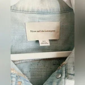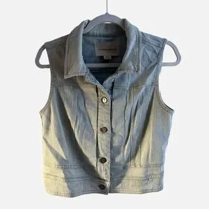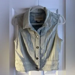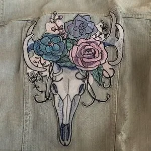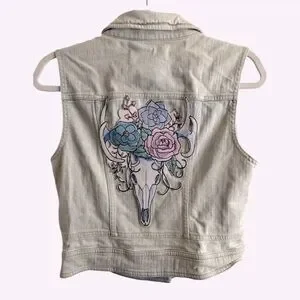 Denim Vest S to M deer 🦌 skull rose 🌹 appliqué embroidered light wash blue