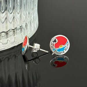 Puerto Rico Earrings S925 Sterling Silver Handmade Ear Stud