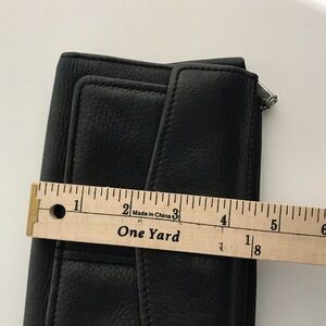 Vintage 90s 2000s Y2K Fossil Women's Thick Cowhide Leather Wallet Black Tri Fold Flap Closure Large Wallet Featuring Zipper Pocket, Slots, and Tons of Pockets