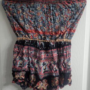 #70 Angie Red Blue Waist Tie with Shorts S