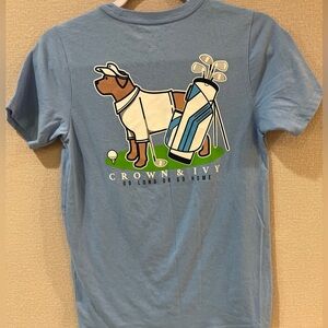 Crown & Ivy Tee Shirt Kids M Blue Dogs Golf Southern Tradition Labrador