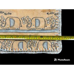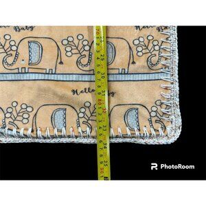 Baby Blanket Elephants Stars Handmade Orange Gray Gender Neutral Soft 27 X 34. This is a very pretty handmade blanket. It is super soft and could be used for a boy or girl. it has a crocheted edge. There are no rips, tears, or stains. However, there are a few places where you can see the edge of the fabric through the crocheting. Please see the pictures for the full description.