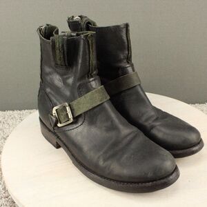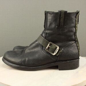 Frye Veronica Boots Womens 9.5B Black Leather Moto Biker Bootie Back Zip Buckles