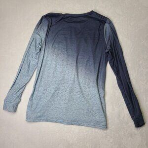Long Sleeve Crew Neck T-Shirt Size L Diagonal Gradient Dark to Light Blue