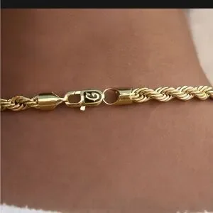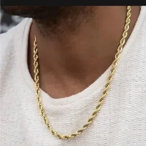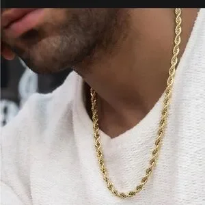By GLD: Introducing the Rope Chain in 6mm - a bolder version of the classic. This high-quality chain is plated in 18k Yellow Gold, featuring an intricate interwoven pattern that will ensure long lasting shine and durability. A must-have to add sophistication to any everyday look, this chain is a timeless accessory. ~41g