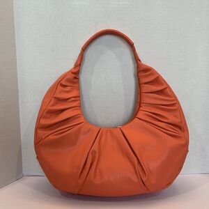 Badgley Mischka coral color hand or shoulder bag. Used in good condition. Zipper closure with zipper inside pocket and two other pockets.
