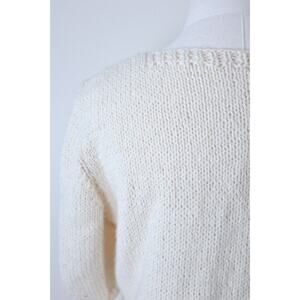 Handmade Cottagecore Short Sleeve Sweater Top Square Neck Cream Cable Knit