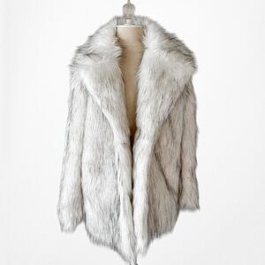 Vintage Y2K White Faux Fur Teddy Bear Style Fluffy Coat Jacket Size M