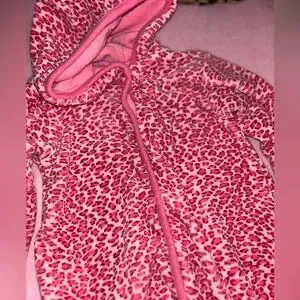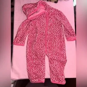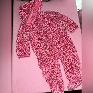 This adorable pink leopard print one piece is perfect for your little one. Made with soft, comfortable fabric, it's ideal for playtime or naptime. The vibrant pink color adds a fun touch to your child's wardrobe.