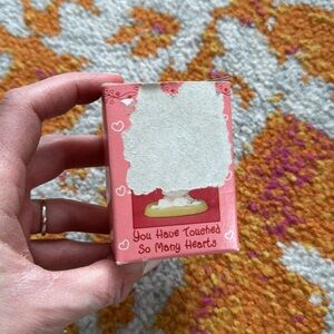 Vintage item dated 1990, comes in original box and protective plastic packaging as shown, one side of box shows image ripped off. This is a miniature sized figurine. It measures 2” H. The hearts are actually dangling on the wire, so cute and tiny