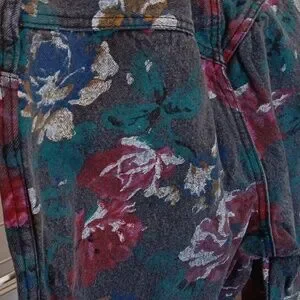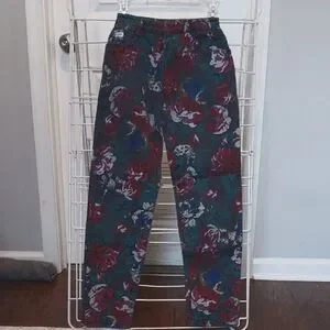 fabulous vintage painted jeans, base black with pink green and blue floral. immaculate condition. measurements in photos. juniors sizing, snatched waists only!