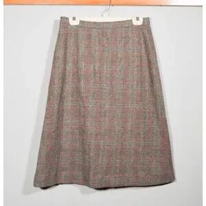 Vintage The Woolrich Woman Wool Gray Tweed Red Plaid Long A Line Skirt Sz 15/16