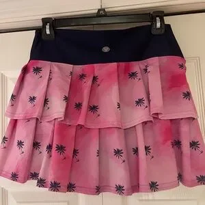 Very pretty pink tennis / pickleball skort with navy waistband and palm trees