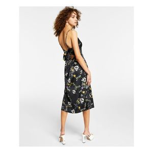 HIPPIE ROSE Womens Black Tie Back Spaghetti Strap Midi Party Fit + Flare Dress S
