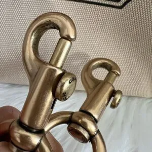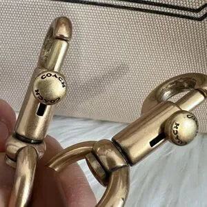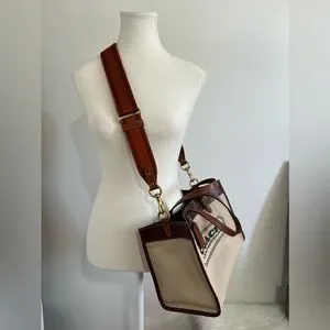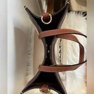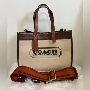 Elegant Coach tote bag in canvas with brown leather trim. Comes with a detachable strap.