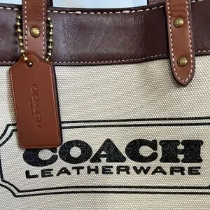 Coach Canvas Tote with Brown Leather Trim