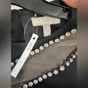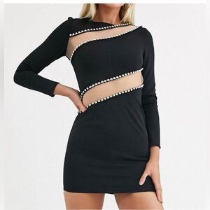 ASOS Design Black Long Sleeve Mesh and Rhinestone Bodycon dress