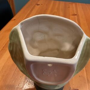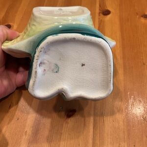 This wonderful mid century lady head vase is by Royal Copley, & I believe is actually a young fella! Measuring 8-1/4”x7-1/4”x3-1/2”, this happy, youngster is quite stylish with their green shirt, mauve neckerchief, & their butter yellow sombrero hat! They have a sparkle in their eye, & a delightful, dreamy grin that just lights up the room! This gorgeous 75 year old beaut has some glaze crazing & a glaze crack on the inside edge that was water tested overnight & showed no leaking, see last pic & all other pics for condition, priced accordingly. Part of an extensive lady head collection that’s being slowly downsized, it’s priced low to sell quickly in hopes of finding it a new forever home!