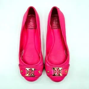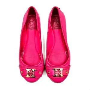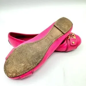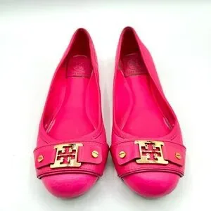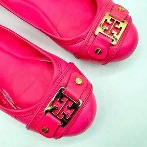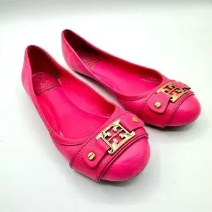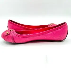 Tory Burch Pink Leather Loafer Ballerina Flats with gold Ornaments - Size 6 M