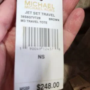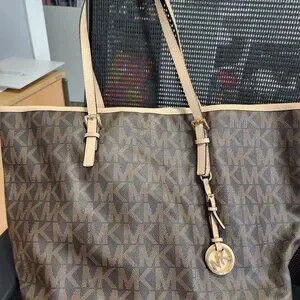 Michael Kors Jet Set Travel Tote Brown. Inside is a zipper pocket and 2 hooks for keys, etc. sizw 18x11x7. 9" drop handle.